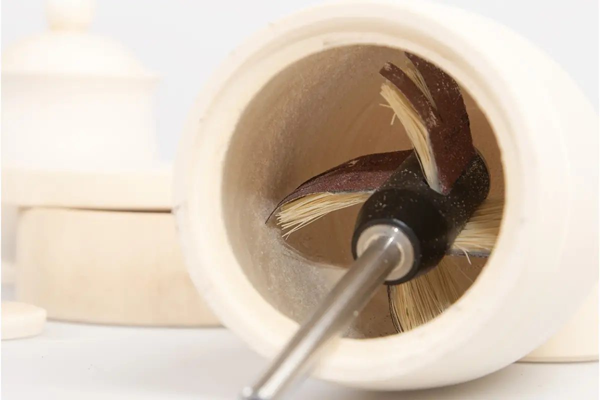 Конструкция шлифовальной системы De-Tero Rmicro тщательно продумана с инженерной точки зрения. Диаметр тела втулки, выполненного из прочного полиацеталя, составляет 23 мм. Этот материал отличается высокой стойкостью к механическим нагрузкам и износу. Заглушка из стали имеет диаметр 25 мм и выступает на 2 мм по отношению к втулке, обеспечивая дополнительную защиту и надежную фиксацию щёток. Все элементы системы изготавливаются с высокой точностью, что исключает люфты и биения в процессе работы. Благодаря этому достигается высокая точность обработки, равномерное снятие материала и качественное финишное шлифование. Кроме того, конструкция обеспечивает устойчивую работу даже при длительном использовании и высоких нагрузках. Это особенно важно при выполнении объёмных производственных задач, где стабильность и надёжность инструмента играют ключевую роль.